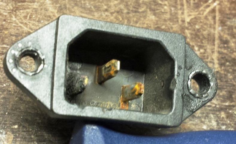 O conector utilizado para a ligação do Gurgel à rede elétrica oxidou-se depois de 2 anos de uso e passou a apresentar mau contato. Decidi substituí-lo por um conector mais adequado (o antigo era um conector tripolar destes usados em fontes de computador).
