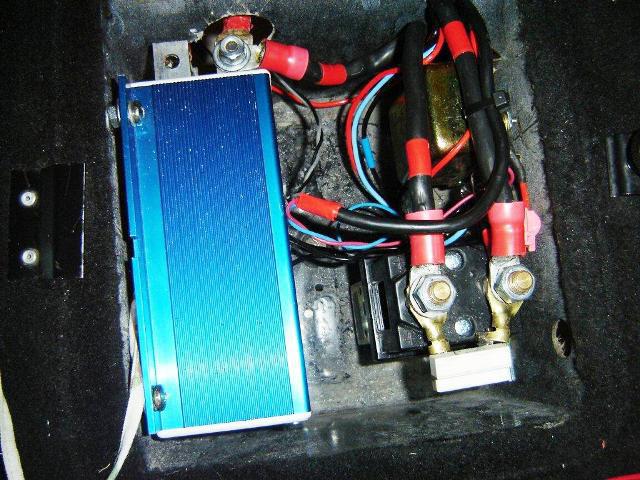 Eu desmontei e reenrolei a bobina de algumas destas contactoras industriais, mas a corrente elétrica necessária para fazer o mecanismo delas atuar precisa ser muito alta pois o espaço disponível para a bobina é pequeno e o fio necessário para construir um solenoide para trabalhar em 12 volts que é a tensão dos circuitos de baixa potência do carro tem que ser muito grosso. Em testes em bancada consegui fazer com que estes solenoides modificados funcionassem bem com correntes acima de 3 amperes, o que é inaceitável se considerarmos que isto representa 3A x 12V = 36 watts perdidos apenas na contactora.