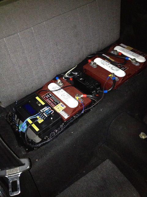 Um dos pontos que ficou claro no primeiro projeto foi o fato de que a maior parte da massa do carro ficou exclusivamente sobre o eixo traseiro. Além do desequilíbrio na distribuição de massa, que como consequência fez com que a direção do Supermini parecesse "hidráulica", obviamente sobrecarreguei a estrutura do carrinho com mais 190 kg apenas sobre o eixo traseiro. Decidi então modificar o assoalho do Gurgel de forma a instalar baterias sob o banco traseiro, deslocando assim parte da massa das baterias para o centro do carro (entre-eixos). Esta operação demandou recortar a fibra de vidro , construir moldes novos e montar compartimentos capazes de suportar o peso de 4 baterias de 29 kg cada. Desta forma, 3 baterias e mais o carregador de baterias onboard ficaram debaixo do banco traseiro e 6 baterias no porta malas.