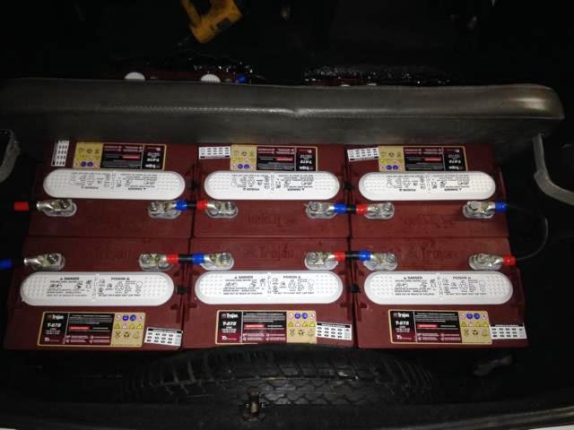 As baterias Trojan são construídas especialmente para uso em veículos elétricos, e supostamente duram muito mais que as baterias estacionárias inicialmente usadas. O investimento é alto - as 9 baterias custaram R$ 7.367,34. Elas vão ter que durar no mínimo uns 4 anos (ou seja, tenho que rodar pelo menos 7.300 km para um resultado equivalente ao que obtive com o uso de baterias estacionárias) o que já vai ser bem ruim (3 km/l). Espero rodar no mínimo uns 20.000 km com estas baterias, pois supondo que consiga fazer 45 km entre recargas e considerando uma vida útil de 500 ciclos de recarga (mantendo a descarga nunca superior a 80%) teoricamente devo poder fazer cerca de 23.000 km. Considerando R$ 0,11/km * 20.000 km = R$ 2.200 em energia + R$ 7.367,34 = R$ 9.600 ou R$ 0,48/km, ou o equivalente a cerca de 6 km/l ao preço da gasolina de hoje. A mesma média que faz minha camionete à gasolina na cidade, só que sem poluir tanto. Mas só o tempo vai dizer se isto é possível.