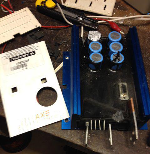 Adquiri uma fonte chaveada para 12 volts 20 amperes (comum no mercado, a minha é da marca Mean Well) mas a mesma não partia com 72V. Estas fontes são desenhadas para trabalhar com tensão de mais de 300 volts no circuito de chaveamento e por isto não arrancam com 72 volts. Concluí ser mais fácil converte-la para minha aplicação que construir uma do zero,e para isto estudei seu circuito com atenção e descobri que a mesma não tem uma fonte auxiliar de partida, sendo a mesma efetuada por um leve desequilíbrio na polarização dos transistores de chaveamento pelo uso de um resistor de alto valor. Alterei o valor deste componente (diminuí a 2/3) e a mesma passou a operar, mas a faixa de tensão de saída ficou menor e a fonte não conseguia alcançaar os 12 volts com cargas maiores do que 4 ampéres.
