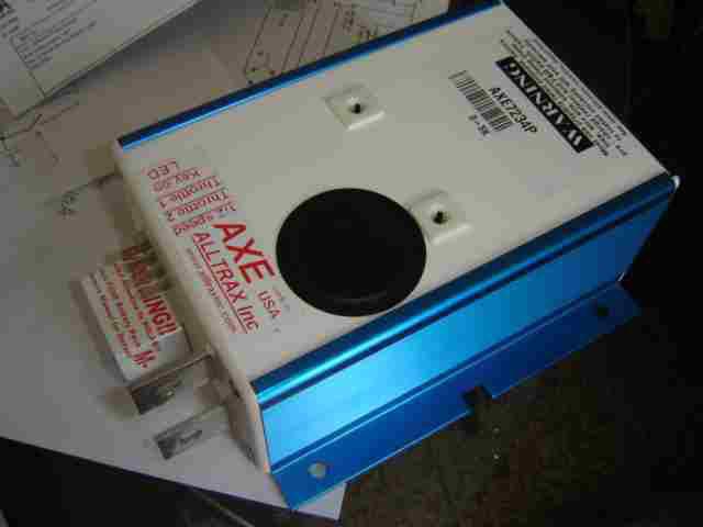 Estes componentes (controladores) são construídos usando transistores de efeito de campo para alta corrente (MOSFET´s) ou transistores bipolares mistos (IGBT), e estes componentes funcionam como chaves eletrônicas. Pensei em projetar meu controlador, mas dada a dificuldade de sua construção por causa das altas correntes envolvidas e dificuldade em conseguir diodos rápidos de recuperação acabei optando por comprar um controlador pronto. O modelo escolhido foi o do fabricante Alltrax modelo AXE7234P (nota: este controlador se mostrou inadequado e foi substituido porteriormente, conforme segue). Este controlador funciona com 72 volts (a tensão que elegí) e é capaz de controlar correntes de até 300 A, e custa relativamente pouco se comparado com os outros controladores comerciais existentes. Ele tem uma interface serial e permite o uso de um software que se pode baixar gratuitamente no site do fabricante , que possibilita ajustar e monitorar vários parâmetros do controlador e motor em tempo real.