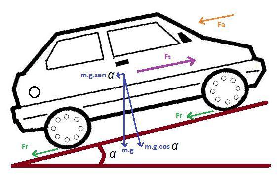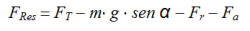 A força resultante FRes é a força de tração gerada pelo conjunto propulsor Ft (motor e agregados) menos as forças que se opõem ao movimento e é o que efetivamente faz o veículo se movimentar: