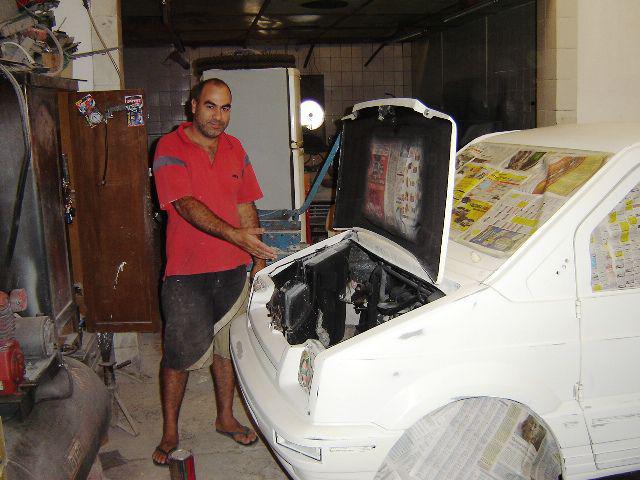 Aproveitei a sua chegada para dar umas voltinhas antes de partir para o projeto definitivo. Resolvi então enviá-lo à oficina de um amigo para refazer alguns detalhes de pintura e revisar a parte da mecânica que será aproveitada - freios, caixa de câmbio, diferencial. Afinal de contas, apesar do ótimo estado, meu Gurgelzinho tinha 19 anos de idade. Como algumas peças da suspensão apresentavam sinais de ferrugem, decidi desmontar tudo e submeter todas as peças metálicas da parte de baixo do carro a um processo de jato de areia para tirar a ferrugem e tinta velha e pintamos tudo com tinta anti-ferrugem e depois de preto.