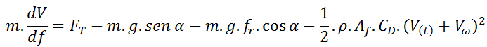 Esta equação está dizendo que a força variável resultante no movimento do veículo (lado esquerdo da equação) é igual à força de tração menos todos os termos de resistência ao movimento.