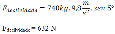 A Força necessária, considerando aceleração de 0 a 60 km/h em 20s, rampa de 5°,vento frontal de 10 km/h e pneus calibrados: