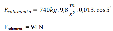Força necessária para vencer a resistência ao rolamento dos pneus: